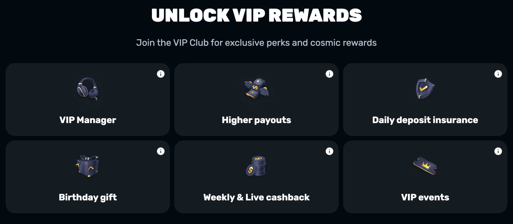 Rocket Play’s VIP and Loyalty structure is built to reward steady play rather than just high-stakes sessions, which makes it accessible to a wide range of players. As soon as you create an account, you’re placed at the entry-level tier—Iron—and every wager you make contributes to earning CompPoints (CP). Climbing the 12-level ladder unlocks progressively better perks, including free spins on well-known slot titles, increasing cashback percentages, and, at the higher end, occasional no-deposit rewards.