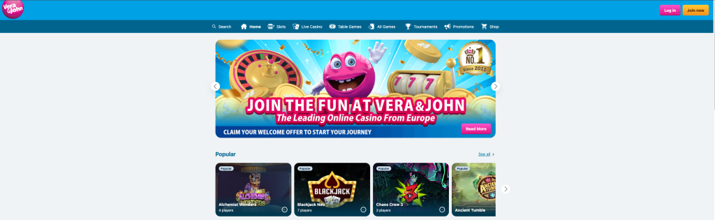 Beyond slots, Vera & John also caters to fans of table games and live dealer experiences. The platform covers multiple gaming categories, including: